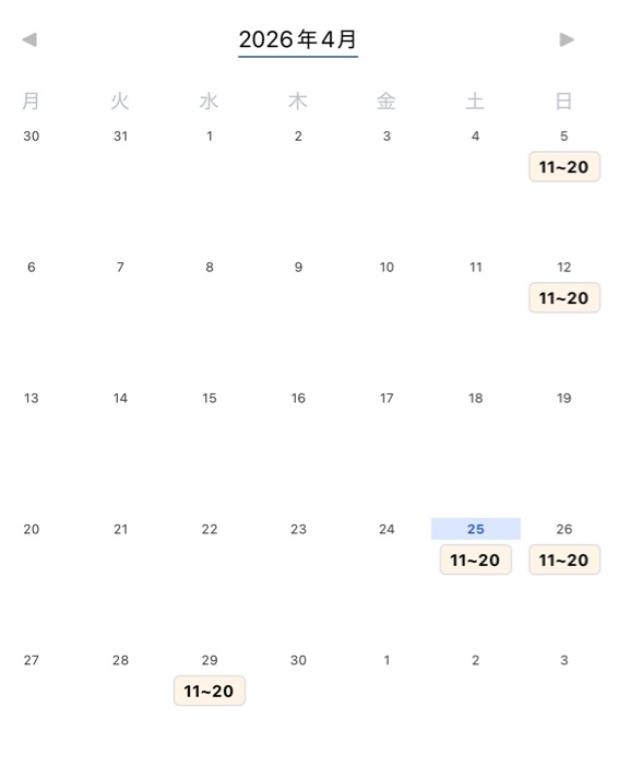 - カレンダー更新