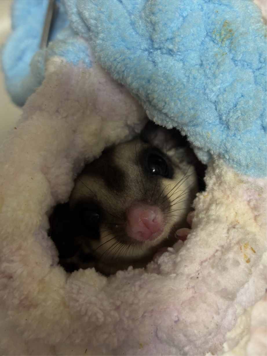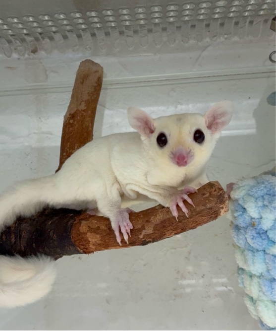 モモンガ: オリジナルの粉末ご飯をベースに、ペレットやゼリー、おやつなどをバランス良く与え、健やかな成長をサポートしています。