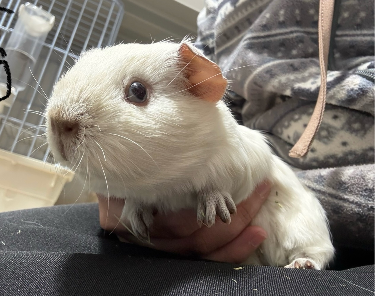 ピンクホワイト 珍しく目がブルーアイの子です。とても人慣れしていますので、初めて飼われる方には飼いやすいと思います。真っ白ボディのフワフワの毛でとっても可愛いです(*^^*)