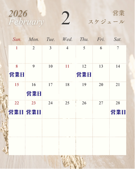 2月は不規則営業となります。営業日以外をご希望の方はご相談ください。